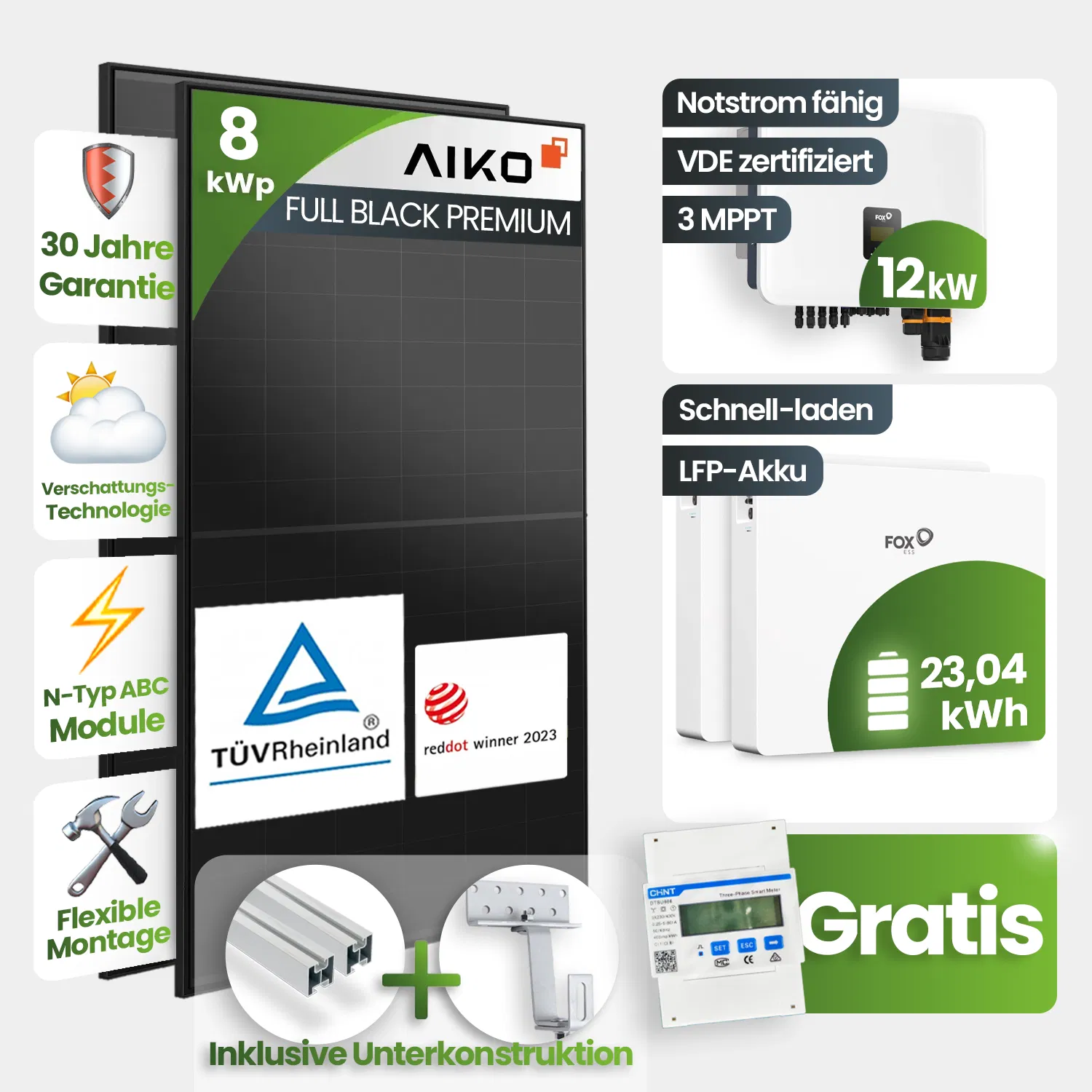 PV-Komplettset mit Aiko 460Wp Fullblack Glas-Glas & Fox ESS H3-12.0-Smart Hybrid-Wechselrichter mit Hochvolt-Speicher