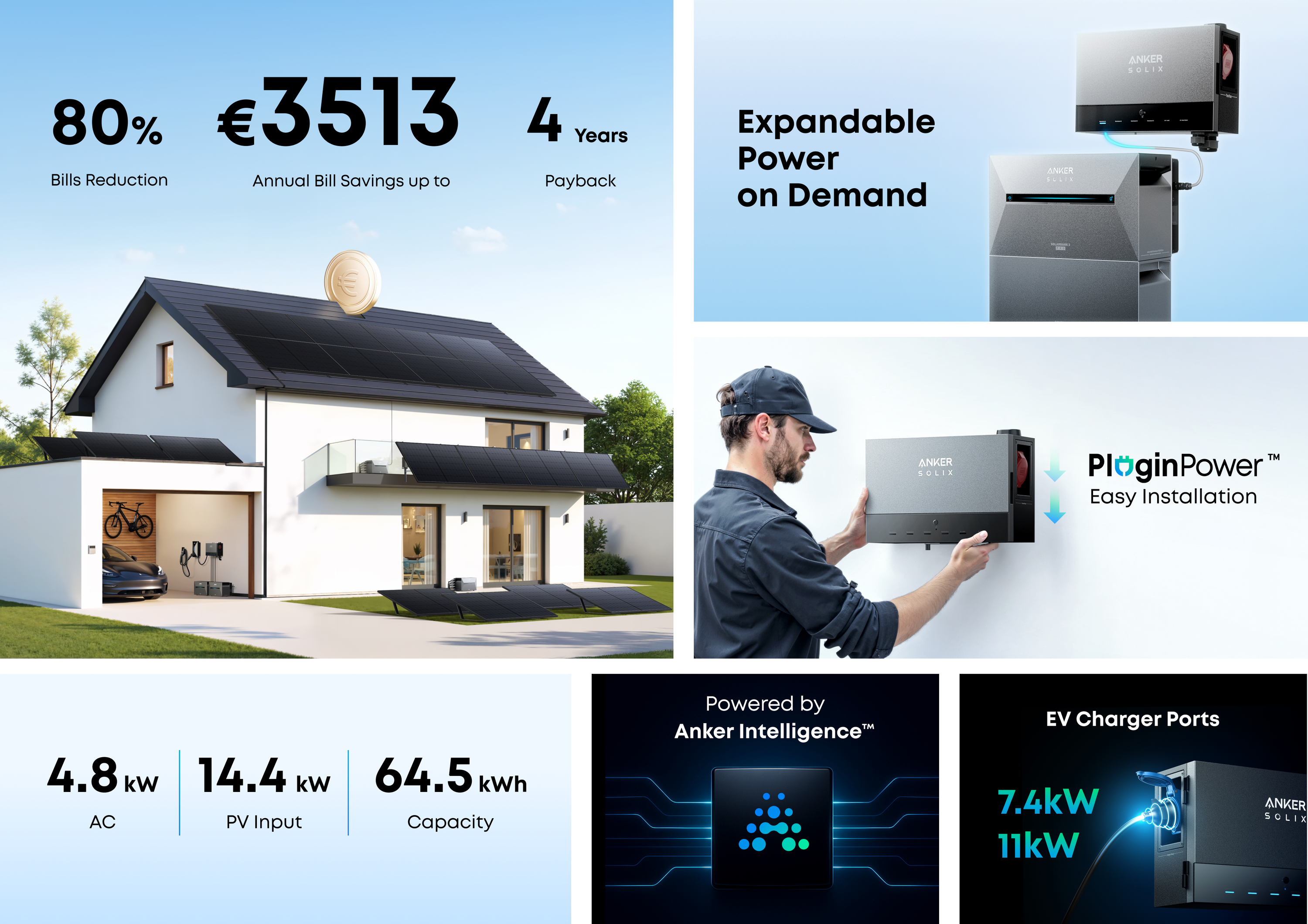 Bis zu vier SOLIX-Module parallel betreiben und flexibel erweitern.