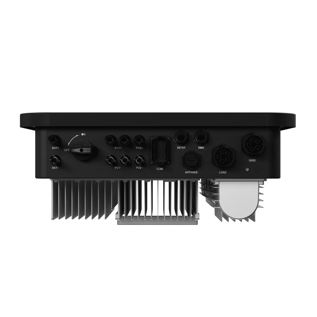 Die Borochi Hybrid Wechselrichter BHW-10, BHW-12 und BHW-15 sind trafolose Dreiphasen-Wechselrichter für netzgekoppelte und netzunabhängige Anwendungen. Sie unterstützen Lithium-Eisenphosphat-Batterien und arbeiten mit einem Batteriespannungsbereich von 150 V bis 600 V. Zwei unabhängige MPP-Tracker erlauben hohe PV-Eingangsleistungen bis 18.750 W. Die integrierte Umschaltfunktion stellt bei Stromausfall eine unterbrechungsarme Notstromversorgung sicher. Über LCD-Display, Web-Portal oder App behältst du Erzeugung, Verbrauch und Batteriestatus jederzeit im Blick. Das robuste IP66-Gehäuse erlaubt die Montage im Innen- und Außenbereich.