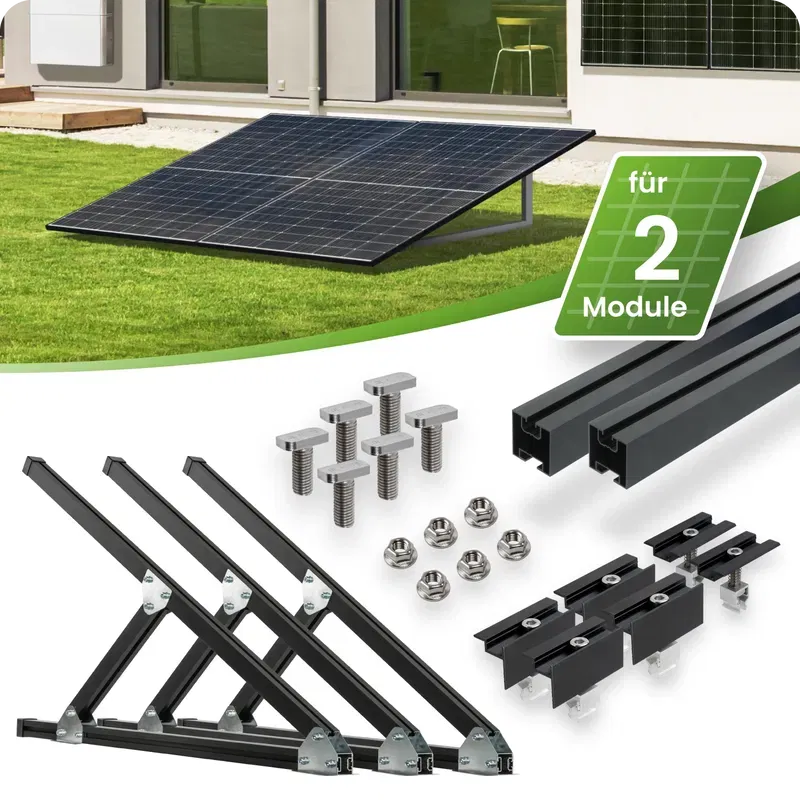 Das Flachdach- und Wandmontageset bietet eine stabile und flexible Lösung zur sicheren Befestigung von Solarmodulen. Es eignet sich sowohl für private als auch für gewerbliche Anlagen, bei denen eine präzise Ausrichtung auf die Sonne entscheidend ist. Durch den einstellbaren Neigungswinkel von 3° bis 45° lässt sich die Konstruktion optimal an unterschiedliche Standorte, Dachformen und Ausrichtungen anpassen. Das Montagesystem besteht aus hochwertigem, korrosionsbeständigem Aluminium (AL6005) und Edelstahl (SS304) und gewährleistet so eine dauerhafte Beständigkeit gegen Witterungseinflüsse. Die vormontierten Schienen und Klick-Klemmen ermöglichen eine besonders schnelle und einfache Installation – ideal für Flachdächer, Carports, Garagen oder Wandmontagen.