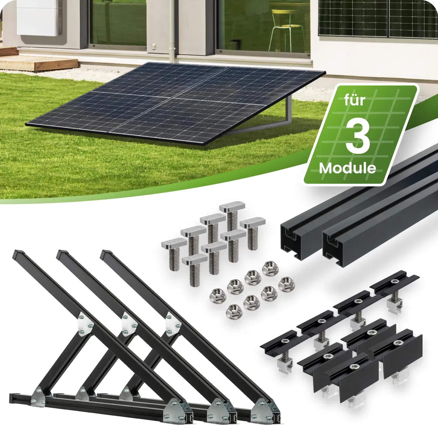 Das Flachdach- und Wandmontageset von Tepto bietet eine professionelle Lösung zur sicheren Befestigung von Solarmodulen in vertikaler Ausrichtung. Der variable Neigungswinkel von 3° bis 45° sorgt für eine präzise Ausrichtung der Module, optimal für maximale Erträge und effiziente Energieproduktion. Das System besteht aus hochwertigen Aluminium-Aufständerungsdreiecken mit vormontierten Schienen (obere Schiene 1,20 m, untere Schiene 1,07 m) und robusten Endkappen. Dank der durchdachten Konstruktion ist die Montage besonders einfach: Module auspacken, aufsetzen, fixieren – fertig. Das Set ist kompatibel mit Standardmodulen mit 30 mm Rahmenhöhe und eignet sich für den Einsatz auf Flachdächern, an Wänden oder auf stabilen Unterkonstruktionen wie Garagen und Carports. Schrauben für die Unterkonstruktion (z. B. Dachsparren) sind separat zu erwerben. Verschmutzungen durch Lagerung stellen keinen Reklamationsgrund dar und können leicht entfernt werden.