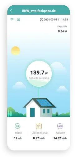 • Wieviel Energie von den angeschlossenen Panels live produziert wird